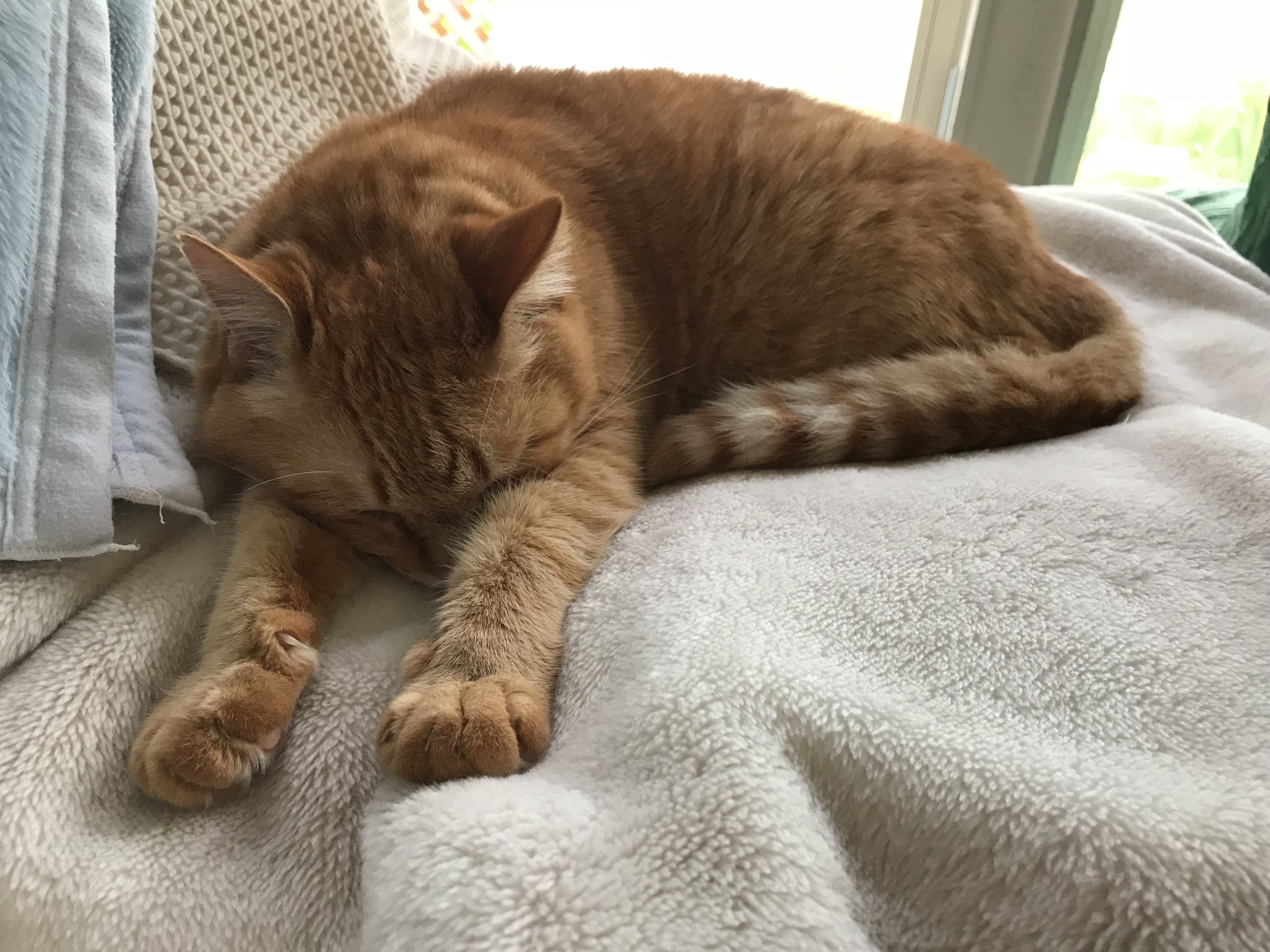 帰省していた子供が帰ったので、ふとんを独り占めしている野分(♀8歳)羽毛布団なので沈み込んでいます。たくさん遊んでもらって疲れたし、ふかふか羽毛布団は寝心地が良くて、熟睡中でしたけれど律義な野分は、いつもどおりに「いってらっしゃ~い」と、小さく鳴いてお見送りしてくれます。はい、行ってきますよと言って、撫でなで・・・ゴールデンウィークも終わっちゃいました。また日常が戻ってきます。
