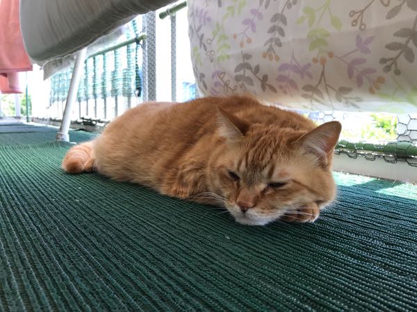最高気温が30度になったので 猫だって暑いらしく ウニ姫(♀16歳)も、だらんと寝てます。 横から見ると、こんな感じ。 やっぱり、ダラダラしてる雰囲気です。 いきなり暑くなったりすれば 人も猫も ついていけませんよね。