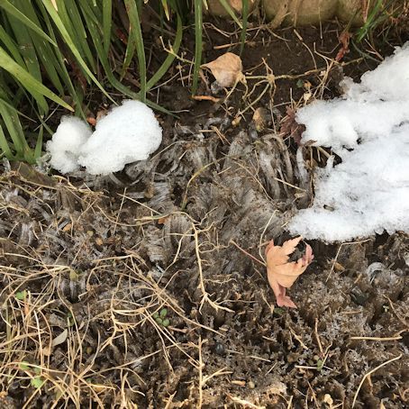 霜柱も溶けずに残っています。
