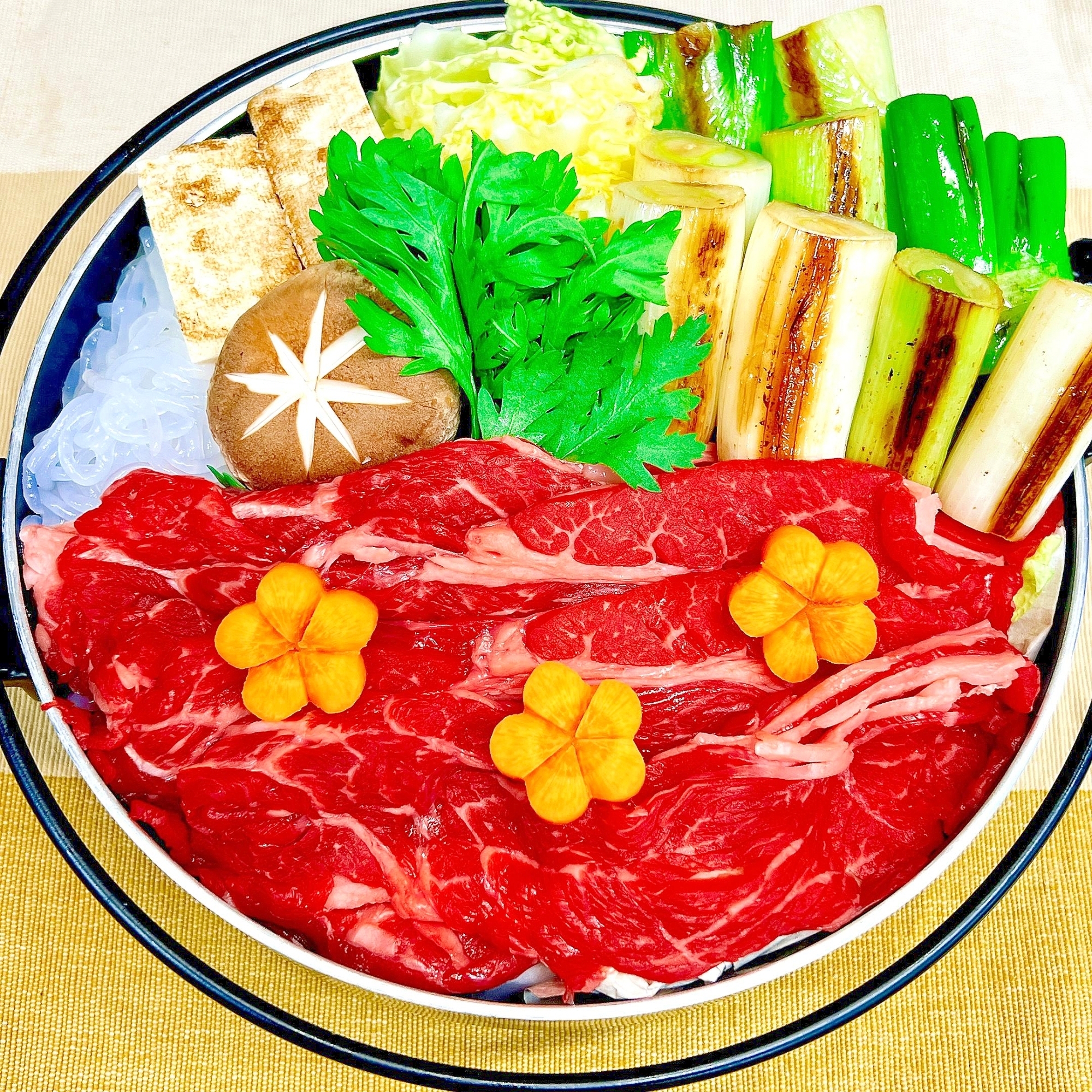 焼きねぎがメインの、すき焼きです。ねぎは焼く事で甘くなり、香ばしいです。醤油とみりんの割下が、美味しいです。卵につけて、お召し上がり下さい。