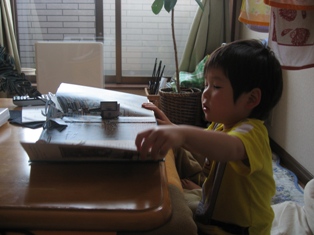 んぬぉぉぉぉ~~~い、忙しい~~~アワワ ヽ(´Д`;≡;´Д`)丿 アワワなんだか、とっても忙しいのです。お昼休みも、銀行に行ったり、市役所に行ったり、郵便局に行ったり、生協の申込書を記入したり・・・家に帰れば、は~ちゃんと遊んだり、ゴーオンジャー見たり、食べたり、眠ったり・・・←本当に忙しいのか暇なのは仕事中だけなんですの~←何か?ということで、なかなか更新できませんでした←言い訳、長っ(゚Д゚;)さて、最近のは~ちゃん、泥んこ遊びに夢中のご様子仕事が終わって帰宅すると、いつも泥まみれで遊んでいます幼稚園のお荷物にも、泥だらけのお洋服がたっぷり入っています。お洗濯は大変ですが、たくさん遊んでいるお土産だと思って、がんばりますそして昨日、お着替えがなくなってしまったのか、初めて制服を着て帰ってきたそうです写真撮りたかったよう~早速、今朝「今日は制服着て幼稚園に行こうか!?」と聞いてみました♪「・・・イヤッぜったいに着ないのっ」だそうです・・・ところで、ロバートサブダさんってご存知ですか???アメリカ在住の、ポップアップ作家です。うるるん(だったっけ?)で見て、すごく欲しくなって「不思議の国のアリス」と「オズの魔法使い」を買いましたは~ちゃんに見つかると、破られたりぐちゃぐちゃにしちゃうので、しばらく隠しておいたのですが、とうとう見つかってしまいましたアリスのトランプ、バラバラになってしまいましたでも「大切な本だから、大事に読んでね。」と説明したら分かってくれたので、オズは無事です↑ちゃ~んと、座って読んで(見て)ます↑エメラルドの都専用メガネがお気に入りもう一つ、最近のお気に入りの遊びが↑「ケンタッキーの空き箱をかぶりたいのっ!!」パパが顔の部分を切ってくれました↑ナポレオンズか!?