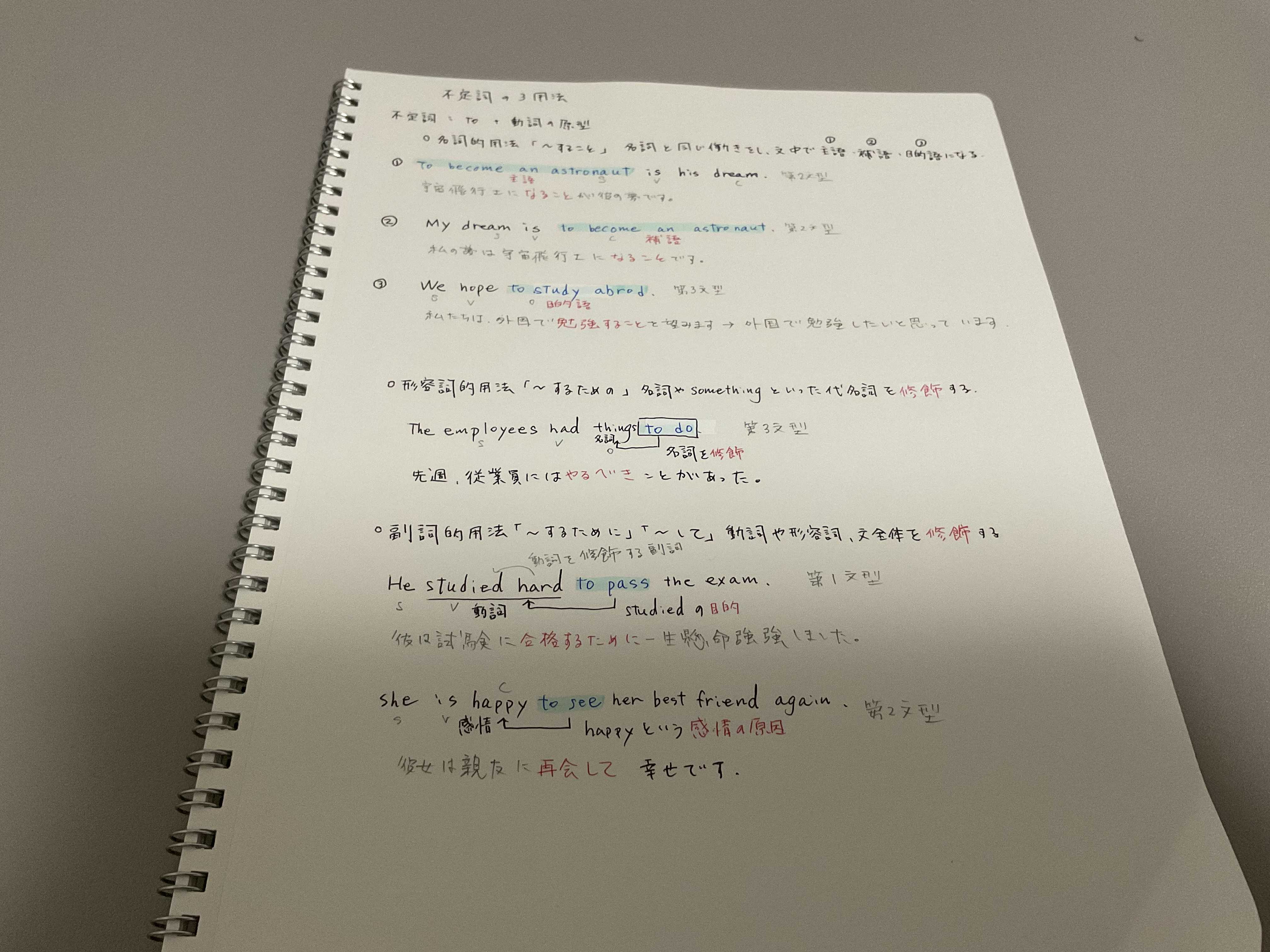 今日は、AIと一緒に3種類の不定詞の用法について学習しました。分からない時には、「これは第何文型ですか?」「これは名詞的用法ですか?」と質問しながら学習を進めました。このように学習できると、今後はわざわざ塾や個別指導に通わなくても、自分のペースで効果的に学習できると感じました。ー