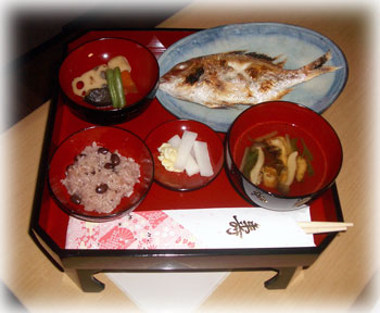 ぴぃ介の体調不良で延び延びになっていた、お食い初めをしました♪お食い初めのお料理は、見様見まねで手作りです。★お食い初めの献立尾頭つき鯛の塩焼き穴子のお吸い物野菜の炊き合わせお赤飯香の物いつものように手抜きの”なんちゃって”料理なんですが、まあまあの見た目に仕上がりました(^_^)v★鯛は小さな連子鯛をスーパーで買ってきて、魚焼グリルで塩焼きに。★お吸い物はダシをとり、水菜としめじを入れ味を整え、穴子の入ったお椀に注ぎました。 ↑これだけは結構まともに作ったかな♪★炊き合わせは、冷凍の和風野菜を使って、お手軽に作っちゃいました(^_^)ゞ★お赤飯は炊飯器で炊きました。もち米:うるち米=2:1で、小豆は赤飯用に水煮になった缶詰めを使えば、と~っても簡単にできます。ホントに洗って、小豆入れて、水加減して、スイッチ・ポン!★大根を甘酢に一晩漬けたものです。たいしたことはしてないのに、漆器の食器に盛りつけると、と~~っても素敵で豪華に見えるんですよね。この食器は、私が小さい時にお食い初めで使った物なんですよ。うちの天使たちは、みんなこの食器でお食い初めをしました。よいお品は、きちんと保管すれば、とっても長持ちしますよね~。大切にとっておいてくれた両親に感謝☆今度は私たちが、天使たちのために、大切に保管したいと思います。自分で作ったお料理なのに、「すご~い!結構いけてるじゃ~ん。」と自己満足しちゃいました(汗)ぴぃ介が、一生食べることに困りませんように(願)