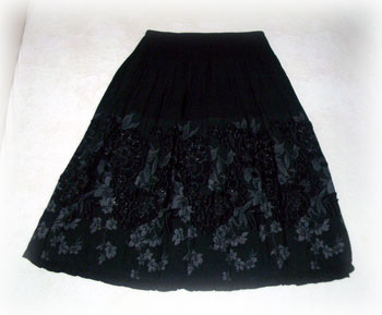 2種類のカットワークレース使いのティアードSKです^^この手のSKが私のツボらしく、迷ったけど両方お買い上げ♪この二つ、そっくりなんですが、ちょっと違うんですよ~。カットワークレースSK(ブラウン)こちらは秋物のスカートです。生地に少し重みがある感じ。素材にウールが入ってますが、一年中はけそうです。裾がイレギュラーになってるので、ふわふわ揺れてキレイ♪ちゃんと裏地付なので、透ける心配はありません^^色は大好きなこげ茶。写真ではレースが見えにくいけど、実物はちゃんと見えます。カットワークレースSK (グレー)こちらが晩夏物のスカート。秋物とは全然違い、こちらはサラッと軽い感じの生地です。明るいグレーが、今までのレストにない感じでお気に入り♪生地が軽いので、裾の揺れ方が秋物より軽やかなんです。こちらも裏地付なので、透ける心配はありません^^レースの順番が、秋物とは逆なんですよ~。わかるかなぁ?二つのスカートを並べるとこんな感じ♪晩夏物は、柄が上から大→大→細→大→細秋物は細→細→大→細→大スカート丈が、ほんの少し秋物が長いんですね。(1~2cmかな?)ゆあ的には、晩夏物の方が微妙にツボです^^