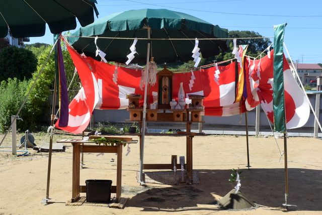 7月2日、大安の日に地鎮祭を行いました。幼稚園生の娘も参加出来るように、お迎え後の15時からにしてもらいました。7月上旬ですと例年だと梅雨の時期でお天気を心配しておりましたが、今年は梅雨も明けており、雲一つない快晴のとても良い日でした。熱すぎるくらいで、パラソルを立ててくれました。小さな子供が2人いたのでとても助かりました。準備も神主さんと古河林業さんがして下さったので、施主である私たちはなにもしていません。初穂料を準備したくらいです。参加者は神主さん、私たち夫婦と子供2人、私の父親、古河林業さんの営業さん、設計士さん、現場監督さんです。時間通りに行くと、注連縄(しめなわ)と祭壇が設置してありました。風が強くて土埃が舞っておりました…。砂遊び大好きの子供たちはこの盛土に興味津々。つつこうとするのを必死で静止しました。中央の祭壇のアップです。お供え物、向かって右側。お酒は古河林業の営業さんが持ってきてくれました。お供え物、向かって左側。玉串奉奠用の榊です。鋤(すき)と鍬(くわ)と思われます。盛土に収めた鎮め物。古河林業さんにお渡しして、工事の時に地中に納めてもらうそうです。地鎮祭は滞りなく行われました。娘はきちんと立って参加していましたが、息子は小さいのでちょろちょろしておりました…。穿初(うがちぞめ)と玉串奉奠の時は娘と息子も参加しました!娘が大きくなった時、なんとなくでも覚えているといいな。最後の乾杯は大人はお酒、娘と息子は神主さんがバナナを渡してくれました。バナナで乾杯だそうです。面白いですね。地鎮祭後、神主さんに初穂料をお渡しして、現場監督の方や解体屋さんも交えて、今後の工事のことについて話し合いをしました。一部、土を削ったり既存のフェンスを取り壊したりする工事があるので、ZEH申請前にその辺りを進めていくとのことです。お供え物は神様からのお下がりということで、神主さんが私たちに持たせてくださいました。バナナ、さくらんぼ、ミニトマト、とうもろこし、しめじ、じゃがいも。こちらは古河林業さんから頂いたお酒です。私はお酒飲めないので、お祝いの時などにふるまおうかな…。無事に工事が進みますように…。そしてZEH補助金の二次公募に受かりますように…(これ重要)。↓お読みいただきありがとうございます。ポチッとして頂けると嬉しく思います。にほんブログ村