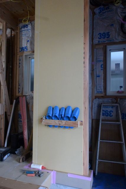 11月26日、お家の中です。玄関を入ったところにスリッパを入れる場所が作られてました。和室です。ダンボールに入って、黒檀の床柱がありました。ホールより階段方向。壁がパネルの状態で少しずつ増えてます。このコルクボードみたいなのは下地だそうです。ちなみに洗面所です。ダイニングカウンターにも下地がずらりと。和室は真壁なので、柱が傷付かないように保護されています。外には外壁のサイディングが積んでありました。こちらのそろそろ進んで行くようです!↓お読みいただきありがとうございます。ポチッとして頂けると嬉しく思います。にほんブログ村