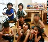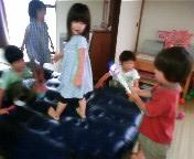 夏休みなので、普段はなかなか遊べない幼稚園のお友達と遊びましたゆーちんからは、クラスのお友達の名前はよく聞いてるものの、今日誘ってくれたお友達とは、幼稚園以外で遊ぶのは初めて。でもさすがクラスメート。男の子3人、女の子2人、さらに小学生のお兄ちゃんお姉ちゃん3人も加わり、めちゃめちゃ楽しそうでした関西人ママたちは、何かと面白い、笑える話が多くて、私の脳も少しは活性化されてますようにAfter 1st semester all schools in Japan are in the long summer holidays now,from July 18 until August 31. One of Yuchin's close classmates invited some kids and their moms to thier house for tea. When they go to school, it's a bit hard schedule to play together after school because our houses are not so close eachother. 3boys,2girls and their siblings,totally 8kids had a blast playing together.