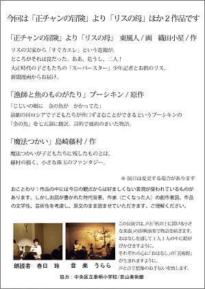 出演 おはなし美術館 ( 朗読:玲 音楽:うらら)