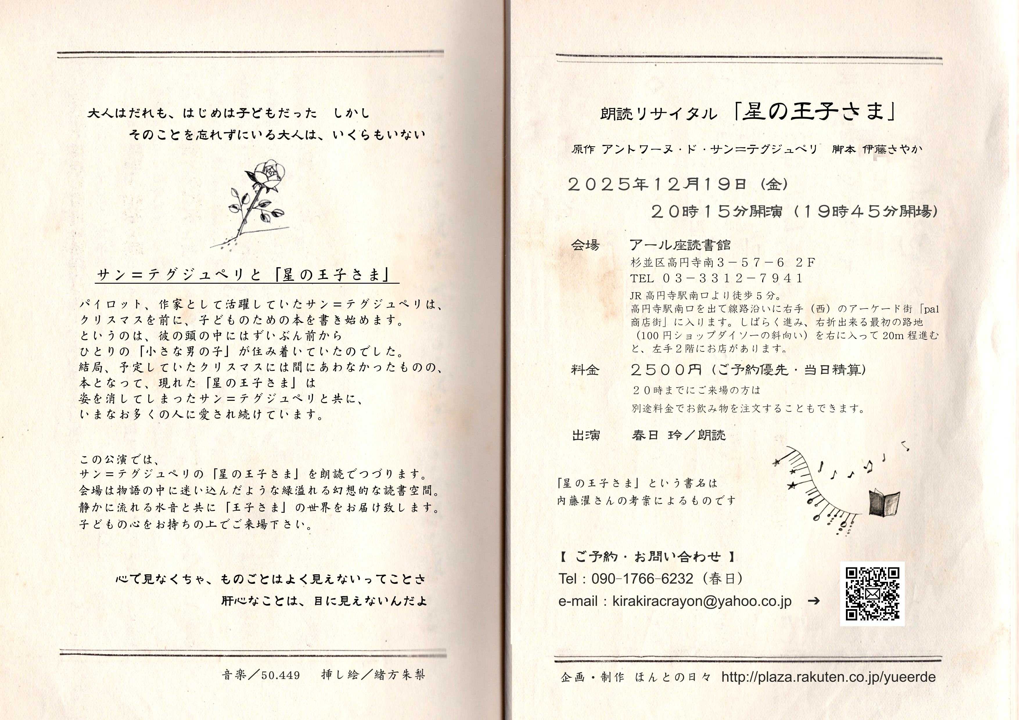 2024朗読リサイタル「星の王子さま」… 2024年12月28日