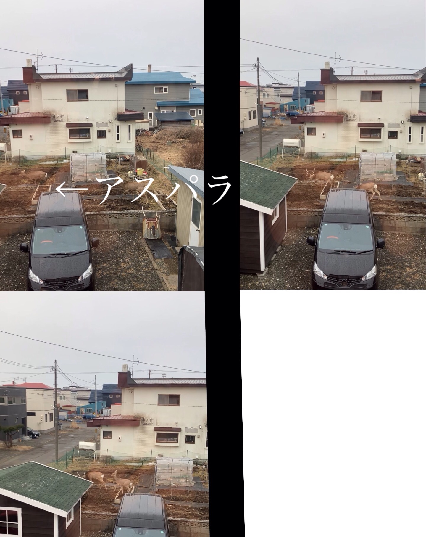 右上 お父さん鹿 (ツノあり)アスパラ踏んでる😆
