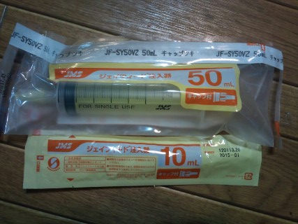 本日のぞたん受診日。耳鼻科、歯科、内科、外科でした。心配の耳は、次回2週間後の受診。今日びっくりしたこと。病院から帰ってきたおれさんが、シリンジをたくさん持ってたー!なぜか今月から、50mlのシリンジと10mlのを支給してくれることになったとか。今まで自費で購入していたのでこれはうれしい~♪かといって、支給が中止になった物品もなく。やった!