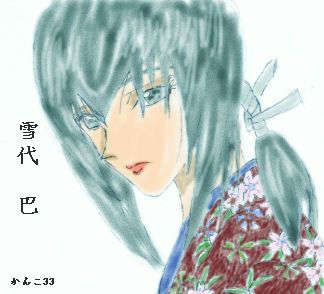 今日、ふと収納ケースに閉まってあったコミックるろうに剣心を見て、以前から描いてみようと思っていたこのキャラを描いてみました。剣心の抜刀斎時代の妻であった、雪代 巴です。美人薄命だったこの女性・・剣心が最初に愛した女性です。二人の運命はとても悲しく、切ない運命でした。剣心の頬に残る十字傷を残した女性でした。私はこの巴というキャラが好きです。今日は描いて満足したので、もう寝ます。