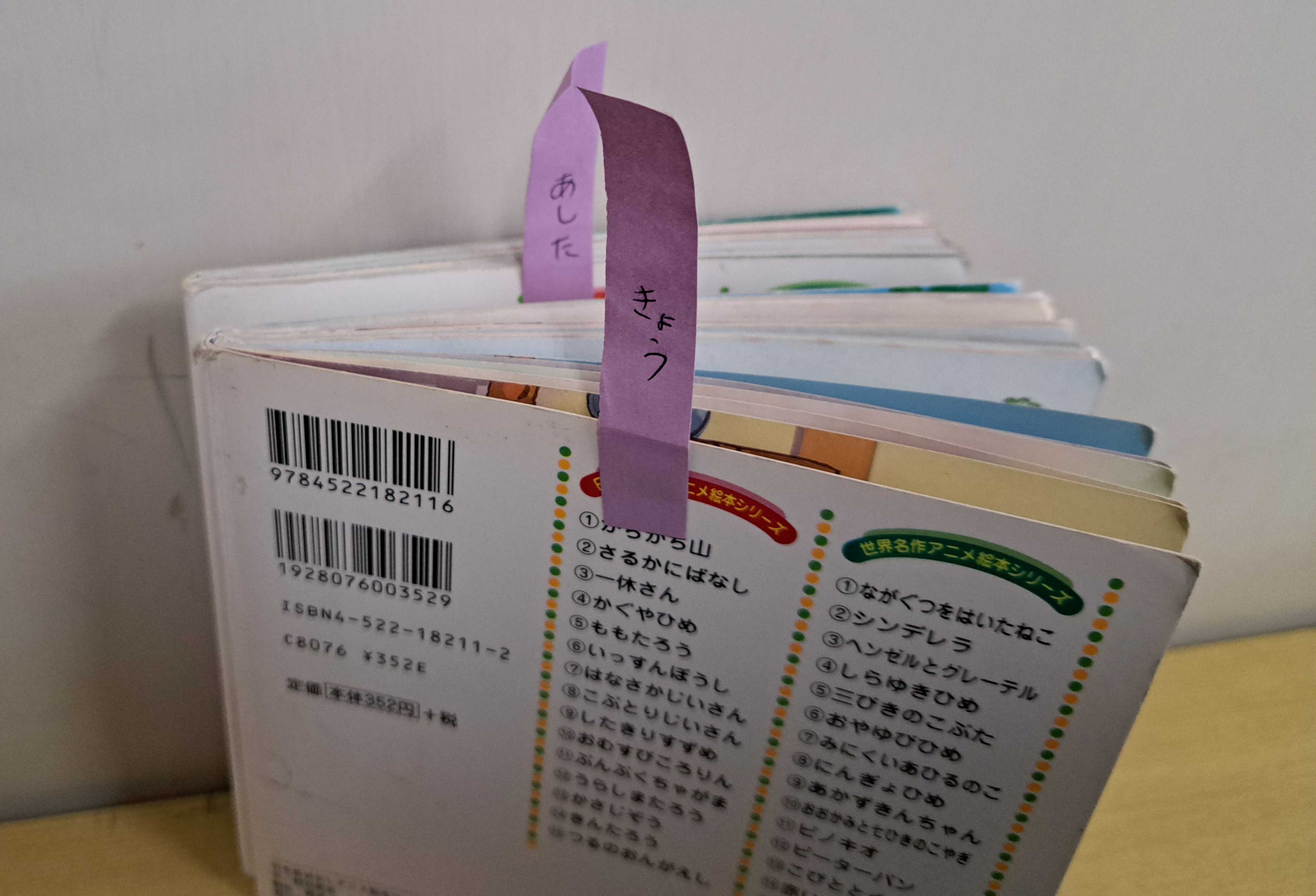 15冊くらい揃っているこの絵本シリーズの裏表紙のコピーを1日1枚、揃えていたようです。