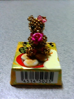特小ビーズで作ったミニくまたん。チャームアクセっぽく金属光沢のビーズにしてみたのですが、途中から目がちかちかしました。ばたり。チロルと大きさを比較して頂けたら、とんでもない感じが伝わるかと…。(笑)きなこもちプレミアム黒みつ仕立て、美味しいです。うさぎの持ち物にしたり、ストールやポンチョに付けるブローチにしたりしようと思ってます。