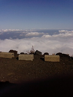 わかなさんとゆうこさんと三人で富士山に行って来ました。二人は三度目ですが、私は初めての富士山。土曜。朝 新宿から出ているバスで五合目まで。昼 五合目でごはん。だらだら食休みをして体を慣らす。夕 七合目の大陽館に到着。ごはんの後は星を見てまったり。日曜。朝 ご来光を見てからのんびり朝ごはん。荷造りをして下山。昼 五合目できのこ満喫。バスで帰る。という行程です。このプランを一週間前に聞いたときはものすごくあっさり断ったのです。しかし。登頂にはもちろん自信がなかったのですが、これなら行けなくもないかも?てゆーか雲海をナマでみたーい!満天のお星さまや天の川がみたーい!と、思い立ったのが金曜の朝。わかなさんにメールしてみると、まだバス等々の予約はしていないから飛び入りでも全く問題ないとのこと。わーい!と思ったのもつかの間。突然すぎて装備が一切ない。もちろんスポーツ用品店に行く時間もない。そもそもインドア人間なのでリュックなんて持ってません。登山靴はおろかスニーカーすら持ってません。大昔購入したコンバースのハイカットが唯一のアウトドア系。てゆかズボンもないじゃん!(甚だしくスカート派)あるのは膝丈のヨガパンツくらいだけど、それじゃ丈が心許ないなあ…。会社帰りに駅前のドンキに駆け込むくらいしか出来ることがない。(笑)だがしかし。ドンキ超お役立ち!リュックがあってびっくりした。こんなにドンキがステキに見えたのは初めてです。ラスケーの赤いのがかわいいうえに2900円とお手頃価格だったので即購入。わかなさんからメールで届いた『持ってくるものリスト』を見つつ(ありがとう~!)、雨具と砂よけのレッグウォーマーと携帯食料も購入。この時点で23時。朝七時半に新宿とのことで、寝坊しそうなのでわかなさん宅に行って朝起こしてもらうことに。何もかも人まかせでございます…。そして朝の新宿駅。・茶のシフォン地の花柄ワンピ(ヨゴレが落ちやすくて乾きやすいんだもの!)・チャコールグレーのタートル長袖インナーワンピ(ポリエステルとレーヨンの混紡なので『綿禁止』のお約束を守れる。しかも首の日焼けも防げる)・黒の10分丈レギンス+黒コンバース(拙宅唯一の二股にわかれた長いボトムと唯一のアウトドア靴)・アナスイのシルクの紫ショール(頭と首を覆えるくらい大判なのがこれだけだった…。)これでちょっとアクセ付けてお化粧すれば普通におデエト姿ですが、私なりに考え抜いてベストを尽くした富士山ルックがコレだったのです…。なによりもリュックが買えたので勇気りんりん。黒革の肩掛けかばんで行くつもりだったんだもの…。『おはよ~。んーん、山ナメてるネ☆』とは開口一番のゆうこさん。前夜にわかなさんからも『富士山でそんなヤツみたことない』と言われていたので、そう言われることは想像がついてました。はは…。大丈夫かコイツは、という雰囲気でのスタート。そのうえ、五合目に着いてバスを降りるなり動悸がすごくてふらつく始末。そもそもバスの車内から既に生あくびが止まらない。菊屋さん(おばあちゃんが金剛杖を貸してくださいました!ありがとうございました!)の美味しいきのこうどんを食べた後も、内心はかなりテンパっておりました。これって高山病の前兆ズバリそのものではなかろうか。座ってるだけで耳にドコドコと脈が聞こえるなんて初めてでした。普通そんなん短距離走の後とかだろうに…。こりゃ六合目を待たずに高山病で引き返すことになるだろうなー。五合目に泊まれるらしいから、ここで二人を待とう…と思いながら12:20頃スタート。ところがどっこい。(いにしえの言葉)さっくさく歩いて七合目の大陽館に無事到着できました。三時間半。アリエナイ!と自分でも驚愕でした。パンフには合計二時間半と書いてあったので、どんくさい上に初富士山なので倍はみておこう…と考えていたのです。動悸の早さに足を出すペースを合わせたらどんどん体調がよくなってきたのです。半ばヤケっぱちで始めたことが功を奏したのです。(笑)ヨガ呼吸をしてたら生あくびもぴたっと収まりました。ただでさえ早い動悸が更に早くなった時だけは、すぐに立ち止まって調整。そうしないとどんどん早足になって、挙げ句走りかねないイキオイだったのです。あわわわ。しかも、少し汗ばんでも、立ち止まっている間の冷たい風ですぐに引いてゆくのがなんとも心地よいのです。タオル要らず!全くもって何もかもがちょうどよいバランスでした。よかったよかった!富士山のほうもなにやらウエルカムムード。きれいに晴れて見晴らしがすごく良いのです。登り始めてすぐに大陽館がちんまり見えてました。日射しは柔らかく、風は心地よく涼しく。とにかく気持ちよくて歩きやすいのです。歩き進めるたびにどんどん道が開かれてゆくような印象でした。例えるならば、山道を曲がる度に中華料理屋にあるような『歓迎光臨』とかなんとか書いてる暖簾を見る