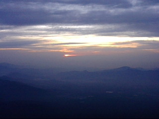 お気に入りの一枚。夜明け前の空のグラデーションがたまらなく好きなのです。次の二枚は心の中で繋げてご覧下さい。その頃、ご来光のはしっこではこんな色彩が繰り広げられておりました。かわゆか…。おはようございます~。青空がとても爽やかです。それにしても太陽の写真のパワフルさってすごいですね…。昨日の三枚ダイジェストだけでは(私が)物足りなかったので補足でした。さて七時半より下山開始です。砂まみれになるということで、雨具のズボンを履いてパーカーを羽織り、日よけにフードをかぶりました。ズボンの裾はレッグウォーマーにインです。砂走り地帯に身のキケンを感じました…。傾斜はまあいいとしても。よくないけど。時折転がっている大きな岩がコワイのです!もし砂で滑って転んで、そこに岩があったらたいへんなことにー!!しかしここを下るのが、わかなさんの今回最大の楽しみだったらしい。大砂走りはもっと楽しい、と断言してました。猛者です。余りにアリエナイ光景だったので写真を撮ってくればよかったなーと思うのですが、当時完全にテンパっておりました。前半、あまりの恐ろしさに金剛杖を握りしめておりましたら。人差し指の付け根にひとつマメができて潰れてるのに、休憩するまで気付きませんでした…。どんだけだ自分!(笑)見てしまったらすごくイタイ。滑って転んで岩に頭を打ち付けて、己のパーカーのフードに脳味噌が転がり出る所しか想像できなかったのです…。フードの中なら砂で汚れないから多分もう一回頭に納めても大丈夫だろう…とかとか。後半は傾斜が緩くて砂も少なく、やっと相性のよい感じになってきました。駆け下りてみたら、わかなさんとゆうこさんが楽しいという理由が分かりました。よかったよかった。人が楽しいって言ってるところを怖いまんまで終えるのはやっぱりさみしいもんね。今なら前半ももっと頑張れるかも…?と思いますが、もう一度あの傾斜と何かの罠のような岩を見たら、やっぱムリ!と思うような気がします。砂走りが終わったら、あとは整理運動のように森林地帯を下って五合目に到着です。木々の緑が心身にやさしいです…。ああ、生きて砂走りをクリアーしましたよ…。登りに三時間半かかったのに下りは二時間でした。すごいなあ砂走り。待望のきのこ料理に舌鼓を打ってから、11時のバスの時間まで小富士ルートをちょろっと歩いたりお土産を覗いたり。火を通したきのこがしゃきしゃきしてるのってスゴイ。なめこは普段見ているものの三倍くらいありました。帰りのバスでは、御殿場で乗り換えて新宿に到着するまでずーっと爆睡でした。食べたら寝る。(笑)砂走りの前半で足にムダな力がかかっていたぶん、やはり筋肉痛です…。イタイイタイ。新宿の喫茶店でだらりとしゃべってから帰宅。すると実家から栗が届いてました。大きくてつやっつやの須木栗ですよ!わーい!すぐさま茹でて、栗2キロの皮むきをしました。富士山から帰ったその足でやるかなヲイとも思いましたが、もう作業したくてしょーがない。食い意地って恐ろしいですネ!それに、今夜重曹水に一晩浸けておけば、明日すぐに渋皮煮の作業に入れるんだもの!普通に茹でて食べてもほくほくで美味しいのですが、皮を剥きたいばっかりに渋皮煮にしてしまう…。本末転倒。栗の皮むき大好きなんです。なんだか心のヨゴレまで剥がれてゆくようです。そんなこんなで富士登山の一泊二日が終了しました。来年も、このくらいの季節にまったり七合目まで登ってみようかと思います。しかし今回の登りがらくちんだったのはどう考えてもビギナーズラックで、次はとんでもない試練が待ち受けてそうな気がします…。うーん。どうしよう。