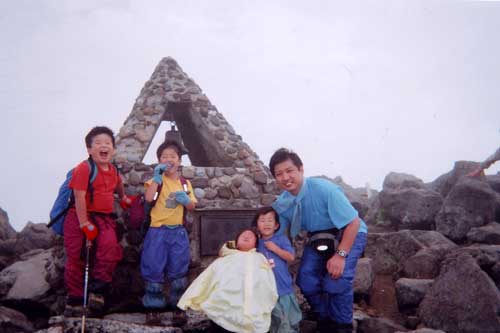 そしてやっと岩木山山頂に到着しました。天候が悪かったのですが山頂は晴れで