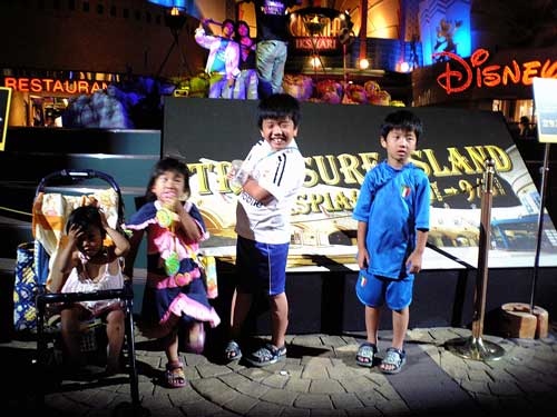 ディズニーストアーの前ではパイレーツオブカリビアンのデモをしていました。