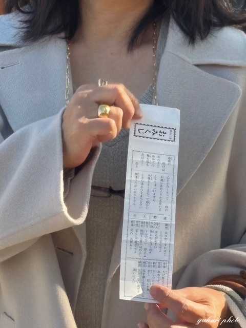 おはようございます。今日も寒い大阪です。家で煮炊きをして暖かくして過ごしています。さて、10日の日に61歳になりました。その日は、後厄だと思い、ご祈祷してもらいに行ったのですが、60歳の厄は後厄はないとか。なので家内安全、心願祈願でご祈祷してもらい、ついでにおみくじも引きました。おみくじは「大吉」を引きました。でも内容によっては気を付けないこともあります。いつも迷った時の指針にするために引いたおみくじはお財布の中に入れています。そんな日のコーデです。その日は、神社に行き、それからうつわやさんに行き、夜は家族でブラジル料理屋さんに行って、お祝いしてもらいました。tops→6(ROKU)botoms→upper hightsouter→DINOSbag→Louis Vuittonshose→Luca Grossiアイボリー系のコートを主役に全体を同じ色合いでまとめました。後ろのベルトが可愛いコートです。中もアイボリーのセーターを着ています。手元は大振りリングで。お気に入りのリングです。この日のことは次回より書いていきたいと思います。#60代ファッション最後まで読んでいただきありがとうございましたm(__)mこちらもよろしくお願いします↓↓↓インスタグラムはこちらのバナーより。お気軽に遊びに来てくださいね♪私の気になるもの、購入品を集めた「夢香里のROOM」です。にほんブログ村にほんブログ村にほんブログ村いつもご訪問&応援クリックありがとうございます。3つのカテゴリーに参加しています。よろしければ、どれか一つにクリックお願いします。