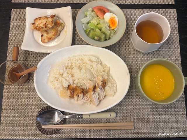 こんにちは。昨日が主人の仕事納め。今日からしばらく年末年始のお休みです。さて、最近の夕ごはんです。オリジナルレシピには☆印をつけています。カオマンガイ、鶏のスパイシーソテー、サラダ(レタス、トマト、キウイ、ゆで玉子)、☆かぼちゃと人参のポタージュスープカオマンガイは無印の手作りキットを使いました。寒くなるとかぼちゃのポタージュをよく作りますが、今回はかなり人参も入れました。【古谷製陶所】荒鉄線 楕円深鉢(大) 皿 信楽焼 陶器 食器 shigaraki shigaraki-yaki 【ふるさと納税】信楽焼 スープカップ 渕荒横彫 2個セット【古谷製陶所】 | 甲賀市 伝統窯元 陶器製 スープカップ 渕荒仕上げ 横彫模様 人気 おすすめ カップ ペアセット 食器セット うつわ スープ皿 マグカップ 湯飲み お取り寄せ 通販 送料無料 ふるさと納税豚バラ大根すき焼き風(Cook Do)、サラダ(レタス、かぼちゃ、トマト、ゆで玉子)、もずく酢(針生姜、梅干し)、味噌汁(豆腐、玉ねぎ、わかめ、青ねぎ)最近は「Cook Do」をよく使います。種類も豊富で美味しくなった気がします。気に入っている一つが豚バラ肉と大根のすき焼き風です。和風なお味で家族にも好評です。【全国送料無料】味の素 CookDo(クックドゥ) きょうの大皿 豚バラ大根用 すき焼き煮 100g豚まん&焼売(蓬莱)、☆レタスと玉子の炒め物、☆水餃子(人参、えのき、わかめ、白ねぎ、白ごま)お出かけした日は蓬莱の豚まんと焼売を買ってきて、簡単夕食にしました。ビビンバ(Cook Do)、☆中華スープ(玉ねぎ、わかめ、玉子、白ごま)Cook Doから韓国のビビンバも出ていたので、試しに買ってみました。甘めなので、もう少しコチジャンを足せば、よりいいかなと思いました。Cook Do KOREA!ビビンバ炒め用(90g×5セット)ユウキ食品 コチジャン(270g)【ユウキ食品(youki)】[韓国甘辛みそ]#夕ごはん最後まで読んでいただきありがとうございましたm(__)mこちらもよろしくお願いします↓↓↓インスタグラムはこちらのバナーより。お気軽に遊びに来てくださいね♪私の気になるもの、購入品を集めた「夢香里のROOM」です。にほんブログ村にほんブログ村にほんブログ村いつもご訪問&応援クリックありがとうございます。3つのカテゴリーに参加しています。よろしければ、どれか一つにクリックお願いします。