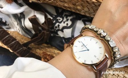手元は、Daniel Wellingtonの時計と AMERICAN RAG CIEのブレスレットで。