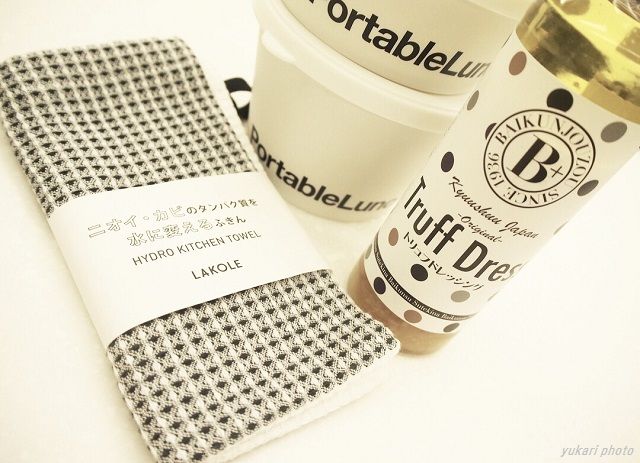 モノトーン仲間たち。無印で買ったドレッシングと一緒にパシャリ!!