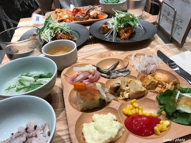 夜は、また無印に戻ってビュッフェ式のカフェで食事をしました。