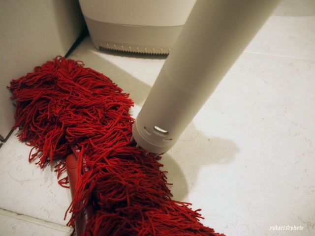 モップについたほこりをクリーナーで取るのですぐ横に置いたんですが、今まではついたほこりは掃除機で吸い取って、何度も使っていました。
