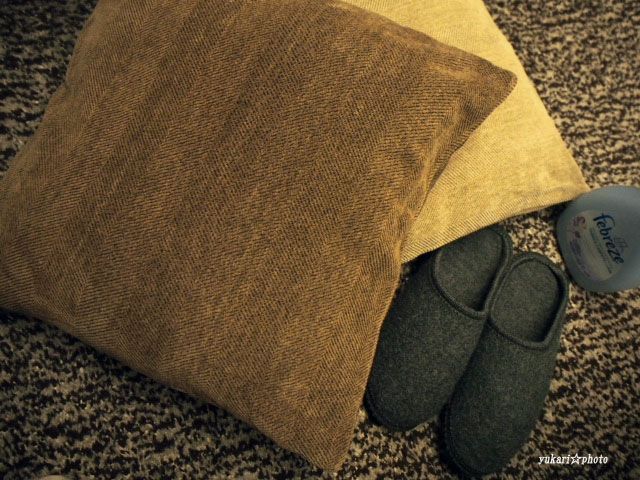 今日はやっと夫のルームシューズを冬物に替え、リビングのクッションカバーも無印の冬用カバーに替えました。