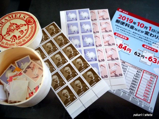 10月から郵便料金の値上がりなので、今ある切手や官製はがきに貼り足す切手に替えました。