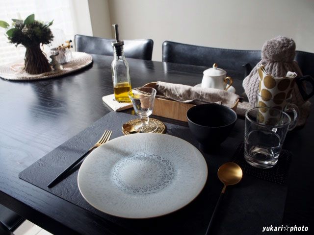 こちらのプレートにはブラック×ゴールドがあうように思えて。