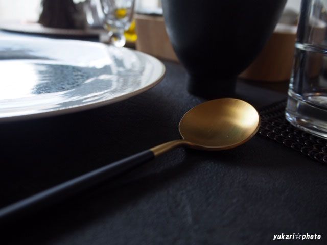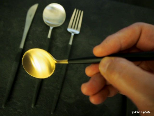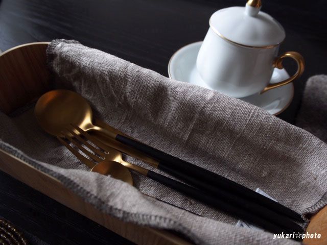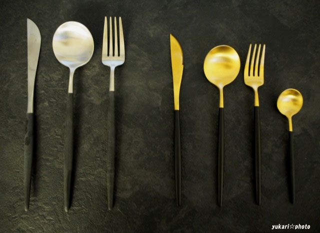 元々持っていたクチポールのカトラリーはブラック×シルバーだったので、今回はゴールドにしました。