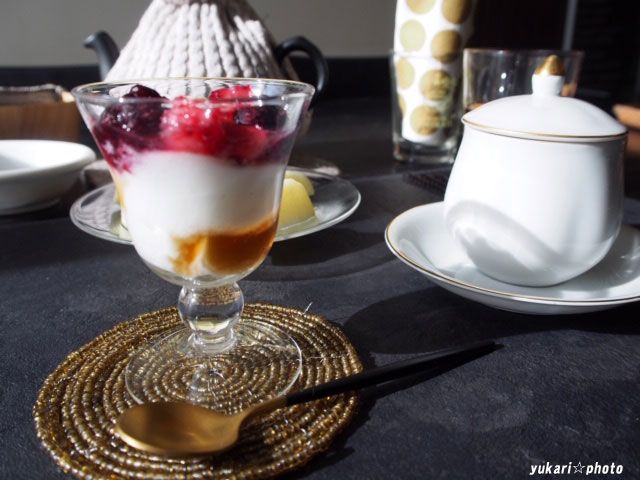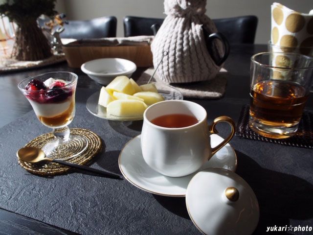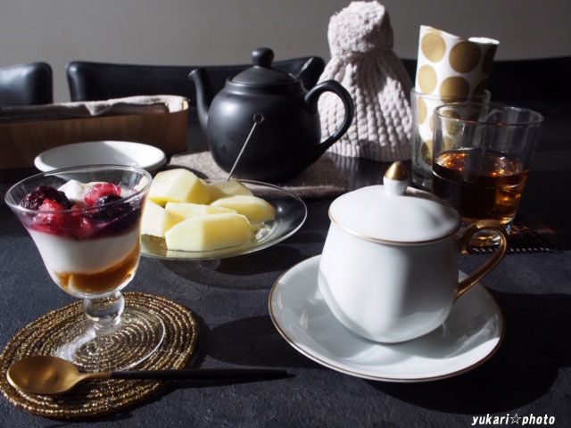 食後はヨーグルトと林檎とムレナスティーのマロン風味の紅茶で、ゆっくりまったりティータイム。