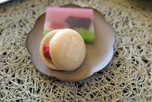「実と美」さんで取り寄せた最中も漆プレートにのせて。