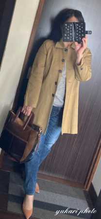 デニムに合わせて、茶系のバッグとパンプスにしました。
