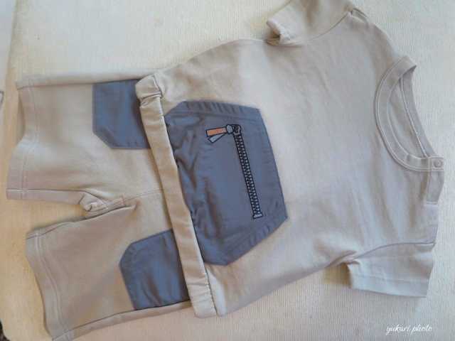 サイズは80で、できれば肩にフックがあって着せやすいものをということだったので、探したらGUにありました。