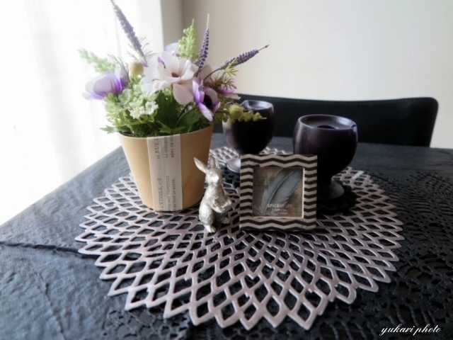 ​端っこには、いつものように花やキャンドルを置いています。