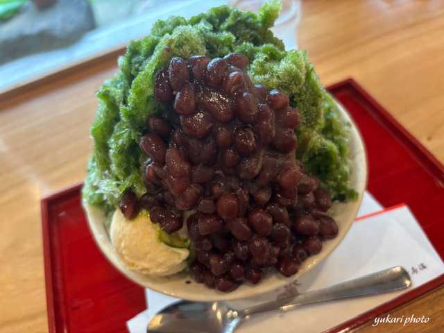 そして、まだしゃべりたりないので、場所を変えて、和菓子屋さんの茶寮に行き、抹茶と小豆とアイスのかき氷をいただきました。