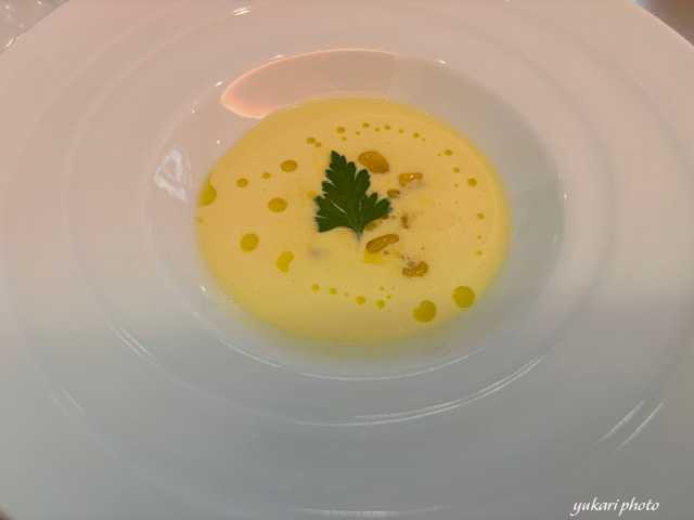まず、とうもろこしの冷製スープです。