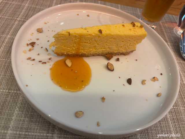 デザートは「チーズケーキ グレープフルーツソース」にしました。