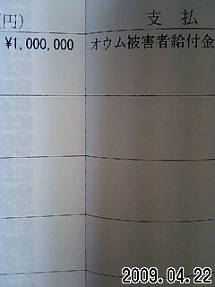 今月になって、給付金がでました。↓サリン事件の給付金です。もう何年たつだろう。今年の3月で14年・・・・。なんかね。こんなに時間がたって、もらうのはとっても不思議です。裁判もそうだけど、ほんとに時間がかかるんだなあ、と感じました。事件のときは、前夫と結婚してる時で、今の旦那はよく事情を知らない・・・。私は今も閉所恐怖症とかありますが(飛行機は)最近は電車の中で急に電車が止まってしまっても過呼吸にもならなくなったし、普通の生活をしています。お金が入るのはうれしいけれど、なんかやっぱりしっくりこない。これで何もかも終わりなんだろうか。うーーーーーーーーーーーーーーーーーーーーん。ちなみに私が事件にあい、一番最初に(親・旦那より早く)かけつけてくれた元上司は先日亡くなり、給付金が出たという報告ができませんでした。入院中毎日来てくれて、たっくさん自腹でお見舞い(菓子など)買ってきてくれました。生きていたら、この給付金で一緒に食事でもしたかったな・・・・・書いてるうちに文章がまとまらなくなってきたのでこのへんにしときます。では。