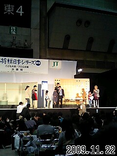11/22(日)はJTの東京の子供将棋大会でした。去年もお友達と一緒に参加したので、今年も応募してビックサイトまでいってきました。各ブロックにわかれて(ブロックは24名います)3回対戦し、全勝した3名が、ブロック代表でトーナメントに出場します。子供だけで1000人以上はいたと思います。うちの子は2勝一敗だったので残念ながらトーナメントには出場できませんでしたが、お友達の一人は3回戦まで進みました(去年は彼は準決勝までいきました)トーナメントに進めなかったたくさんの子供たちは、その後いろんな子供たちとの自由対局に進み、たくさん対局してJTより将棋の消しゴムをゲットしていました。JTの飲み物も一人二本無料で(アンケートに答えたりクイズラリーに答えないとですが)もらえて、ゲストのトークも聞けて(今年は、つるのたけしが来ました)無料ですし、とても楽しかったと思います、子供にとっては。つるのたけしは、近くで見ましたが、正直かっこいいやっぱり芸能人ってオーラがあるのかな??派手な服も全然決まってるしね。一番右です。ちょっと小さすぎたわ彼はアマチュア2段だといってましたが、それってすごい。アタマ悪いのは、芸風でほんとはアタマいいんじゃあ・・・。とか思いましたねー。そんな感じで朝から行ったJT子供将棋大会は午後2時半ごろかなー。疲れてしまったので、その後に行われたプロ将棋を見ずに会場を後にしました。話は変わりますが、うちのネコくん、毛がのびてしょうがなかったのでカットに行きました(ネコの場合ボウズです)こんな感じどこに乗ってるかお分かりですか?エヌゲージの線路の上ですネコくん、寒そうですー。でも毛がとばなくなって、私は大助かりです。エヌゲージは、2週間位前に旦那と子どもが出したのですが、今はずーーーと出しっぱなしです。一応毎日動かしてはいるみたいです。新幹線500系、700系、MAXとかが走っています。私は500系がスレンダーで好きなんですが、あれって、確かもうすぐ廃止ですよねー。残念、残念。3LDKの我が家も、虫部屋・パチスロと鳥の部屋・エヌゲージ部屋と3部屋使ってしまってるので、ほとんどリビングで生活している次第です(子供の机もリビングです)リビングは、他に大型テレビと机しかないので超広々で、みんなでそこに寝ています。子供はあと一年半で中学生。それまでには、虫部屋を一掃しないとですー。では、では、またそのうちです