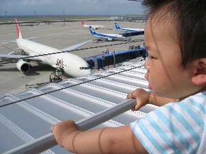 セントレアに行ってきました。私自身はちょっとご無沙汰なのでした。午前中は雨が降ってたけど着く頃には止んでいてしっかりとデッキにいけましたよ!ゆうくんも幾度となくセントレアには足を運んだものの、今回は初めて飛行機に興味を示した模様それよりも下で忙しそうに動き回る車たちに興味がありそうでしたが。食事はまるは食堂で。結構待ちましたが店員さんの対応は○絶対忙しいのにゆうくんにも笑顔で話し掛けてくれるなんて。でも食事はやっぱりあっちにもこっちにも手を出すゆうくんに手を焼いてゆっくり食事できず。うーん、それにしても美味しいエビフライと鯛の塩焼きでした。その後フラフラしていると出番待ちのキャラクターに遭遇!最初はセントレアのキャラクターであるひこうきくんかと思ったけれどどうやら紹介されて「ジャルッチ」くんと判明。丁寧に挨拶してくれました。そしてその後ろを歩いていた「まめっち」というキャラクターとコレは一体何物なんだ?ジャルッチはJALのキャラクターなんだろうなぁ。じゃあまめっちは??と思って調べたらどうやらたまごっちのキャラらしい。どんなコラボなの??ナゾですわ・・・。