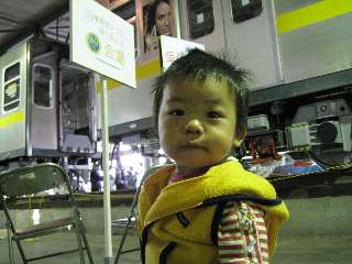えーっと、11月11日なんですよ、実は。PaPaのお客さんである名古屋市交通局の地下鉄50周年という記念イベントに参加してきました。当日は15時までなのにゆうくんは13時半になっても昼寝から起きない為たたき起こしてランチをさっさと食べて出発!妻えこは自己研鑽のセミナーの為不在です。さて、なんとか2時半頃に到着。ほとんどのイベントは受付終了してましたがでも地下鉄を間近で見れましたやっぱり下から見ると大きいね!最新車両という地下鉄に乗車したりペーパークラフトの東山線を貰ったり。そんな中PaPaもお客さんに無事挨拶を済ませて帰路の途中に・・・!あれは!ハッチーだ!!近づいて一緒に写真を撮りたいな・・・でも、アレッ・・・?どうもゆうくんがちっちゃ過ぎて見えないみたい。隣に立ってた関係者のお兄さんに「ハッチー!もうちょっと左!下!したぁ!」と声を掛けてもらってやっと握手できました。ゆうくんはハッチーに触られてビビって一瞬で手を引いてましたが・・・大きな電車が身近で見れたし、ゆうくんも大層刺激を受けたようでした