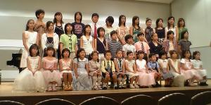 昨日は午前中は雨午後からはときどき晴れ間も見える天気になりました昨日はいちかのピアノ発表会でしたいちかはいつもより早く起きてピアノの練習をしていましたお父さんは残念ながらお休みではないので会場まで、グランパとばーばが連れて行ってくれることになりましたドレスを着てすっかり準備の出来たいちかと違いせいたは眠たそうな目をしてなかなか着替えてくれませんそれでも頑張って着替え準備v('∇^*)ォッヶー★ 雨の中車に乗り込みいざ会場へ思ったより早く付いたので早めに受付を済ませ席取りをしましたいちかはやっぱり緊張している様子でそわそわしてます「きんちょうしてきた~」と自分でも言ってましたしばらくして発表会の始まりの放送が入り幕が開きました出番の5番前になると舞台裏まで行かなくてはいけないのですがいちかは12番少し時間があるので先のこの演奏を聞いてました6番の子が終わったときいちかは舞台裏に行きました7・・・8・・・9・・・10・・・11・・・いよいよいちかの出番です私はビデオ片手にいちかの出番を待ちます「12番・・・・・・・いちかさん」アナウンスが入りましたあ!いちかが出てきた緊張しているのか歩き方がなんだか変ですピアノの前で一礼して着席すぐ演奏が始まりましたいつもの練習より上手に弾けてました本番に強いのでしょうか演奏はあっという間に終わり、なんだかほっとしました少ししていちかが席に戻ってきましたそれからは終了するまで他の子の演奏を聴くばかりなので気が楽でした後になるほど上手な子になるので感心しながら聞いてるととなりで「いちかもこんなに弾けるようになる」と聞いてきました「もちろんちゃんと練習したら絶対弾けるで」と答えるとにっこりして「がんばるわ」と言ってくれましたなんだかうれしいです全ての演奏が終わった後に、記念撮影があり皆舞台に上がって写真をパチリ いっちゃんよく頑張ったねせいたはずっと退屈だったようで、ゴソゴソ動きいちかの番が終わってからは「まだかえれへんの」の連発静かにじっとさせるのが大変でした帰りにグランパ、ばーば私いちかせいたでファミリーレストランに入り昼食をとり退屈で不機嫌だったせいたの機嫌も元通り家に到着して疲れたので少しだけお昼寝してから天使達は外に飛び出し遅くなるまで帰ってきませんでした帰ってごはん食べてお風呂入ってすぐ寝ると思うでしょいえいえ。「ハウルの動く城」見ると言って最後まで頑張って起きてましたそれからはやっと布団に入って寝てくれましたちょっと遅めの天使の寝顔でした