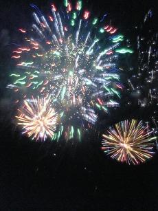 今日の天使達は…今日はせいたのピアノレッスンの日夏休みだけど、幼稚園でいつもと同じ2時から始まります2時、それは一番暑い時間帯・・・いつもなら汗だくになりながら自転車で20分ほど走るのですが今日は、お父さんがお休み(久しぶりの二連休)なのでドライブがてら、お父さん私天使達で涼しく快適に車で出発車だとあっという間に幼稚園に到着しましたかなり早く到着したのですが、天使達はレッスンしているホールで追いかけっこを始めました走る走る走る汗だくになってましたレッスンが始まると私たちは退散(せいたくんは私たちがいると気になってレッスンにならないようなのです)一時間後レッスン終了迎えに行くとニコニコ顔で駆け寄ってきました皆で車に乗り込みそのままついでにお買い物ミドリ電化にもよってレンジを購入し帰っている途中ちらほら浴衣を着ている人たちを見かけたのですどこかでお祭りでもしているのかなと思っていたとき自衛隊の駐屯地の前を通過!!!!今日は自衛隊の花火大会の日だったのです普段は入れない基地内に人が続々と入っていきますこれは行かなくては!!とお父さんはハンドルを切り駐車場へ到着天使達を連れていざ基地内へ!!敷地内に入ると、自衛隊員の方が焼きそば、イカ焼き、フランクフルトカキ氷などなど売っていました私たちが着いたころにはすでに焼きそば、フランクフルトは完売他のものにも長蛇の列負けじと並び、カキ氷、イカ焼き、とうもろこしをゲットし花火の見える位置に移動皆さんシートなどを持参していたのですが私たちは突然きたので、そんなものはなく地べたに座りました花火が始まると以外にいい感じに見える場所でラッキーでした突然の爆音が響き花火大会開始せいたくん思いっきりビックリしてました 近くで打ち上げていたので花火が降ってくるみたいでした大きな花火が開いたとき、せいたの口からこんな言葉が「あのおつきさま、もえてしまうんちゃう」と心配そうにいいました「???」私は月を見上げてみましたすると、大きな花火が上がるとちょうどお月様にかかるような感じでした花火の火がお月様についてしまうと思ったみたいです色とりどりの花火が上がるたび天使達は歓声を上げ喜んでましたこの花火大会にこれて本当によかったですなんだかんだと疲れた天使達綺麗な花火の夢でも見てるのかな今日もかわいい天使の寝顔だね
