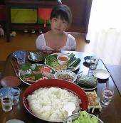 今日は昨日お父さんが仕入れ間違いをしてしまったおばちゃんのために購入してきた大量の酢飯があるので散らし寿司にするためばーばに半切りを借りようと電話して持ってきてもらいました混ぜるだけの散らし寿司は簡単に出来上がりばーばと話をしていると家の裏にある杏畑の話題に変わりました今、杏の実が豊作で赤い実をいっぱいつけています所有者の方はほとんど来ることもなく手入れもせず雑草は生え得たいの知れない虫がいるし実が実っていても収穫をすることもなくほったらかし…春になり花が満開になるとものすごく綺麗でいいのですがこの季節実った実が落ち暑さで腐り始めるとものすごい臭気を漂わせているのです畑に面した窓を開けると一気に臭気が舞い込みますせめて収穫してくれたらと思うのですと、そこで思ったのです収穫しに来ないのなら、私が収穫しようかしらとちょっと小ぶりの杏だけど赤くとっても美味しそういけないことと思いつつ…裏からこそっと敷地に入り虫取り網で、綺麗な実を収穫網いっぱいに収穫できました洗ってから家で食べてみましたが、とっても甘くて美味しかったのでご近所にもおすそ分け(決して共犯になってもらうためではないです)こんなに美味しい実が毎年朽ち果てるだけなのはもったいないです本当は所有者の方の許可を頂いてから収穫するつもりだったのですが今年に入っても全く姿も見ず住んでいるところも知らないのでちょっとお邪魔して収穫させていただきました…これってやっぱり犯罪かしら子供達も美味しいっと次から次と食べてましたあんなにいっぱい収穫したのにあっという間になくなってしまいました…………また収穫しに行こうかしら…でもあの蚊の大群だけはいや~(||゚Д゚)ヒィィィ(゚Д゚||)散らし寿司はばーばたちにもおすそ分け(もちろん杏も)みんなとっても美味しいって喜んでくれましたお寿司って普段のごはんの量の何倍も食べれてしまうのは私だけでしょうか