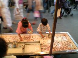 ゜*。・*゜ヽ(*´∀`)ノ.・。*゜。今日は晴れ~暑かったですねぇ今日は短縮保育、短縮授業なので子供達はいつもよりずっと早く帰ってきましたお父さんも休みだし、以前住んでいた近くの神社がお祭りをしているというので疲れるといけないので少しお昼ねをしてから行ってきましたやっぱりお祭りはいいですなんか血が騒ぎます神社に到着するとまずお賽銭を入れお参りし定番のおみくじを引き大吉が一人も出ることなく良くも悪くもない結果に…いよいよ夜店回りまず始めに金魚すくいいちかせいた頑張ってすくってます 私も挑戦したのですが、せいたの攻撃を受け一瞬で終了せいたは8匹で、いちかは 何匹ちなみに私は4匹…次回に期待しよう夜店を練り歩くうちこんなものが目の前に お化け屋敷も参加してていちかせいたが大絶叫とんで逃げました(私的には入ってみたかったのですが…)しっかりだんじりも見学して (何枚か携帯で撮ったのですが、これが一番いい出来でした…見ずらいわね)皆でたっぷりお祭りを満喫して帰ってきました
