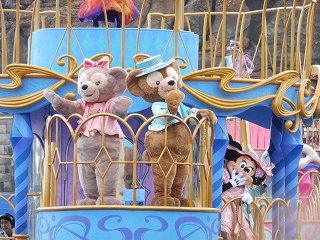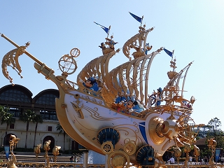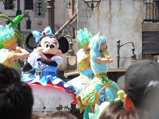 この日の朝を見ました。お互いに体調があまり良くなくて・・・直前で立ち見で見たのでした。場所はザンビーニ前くらい。目の前のところダンサーさんやらピノキオなどなどが通るので楽しかったですよ。まずは皆さん船で登場ですね。私たちのところは最初はだれだったかな?グーフィーたちだった。ミッキーやらミニーもちゃんと回ってきてくれます。やっぱりこの2人はかわいい。何だったかな?愛情・友情・元気だったかな?宝石の色で違うってやつですね。音楽もシーにまつわるもので聴きやすくて楽しかったですね。途中みんなでの手でのダンスもありましたよ。ザンビーニ前で見ると次回は真正面と・・・違うところでと欲が出ます。次回行くことあればもちろん違うところで見ます。
