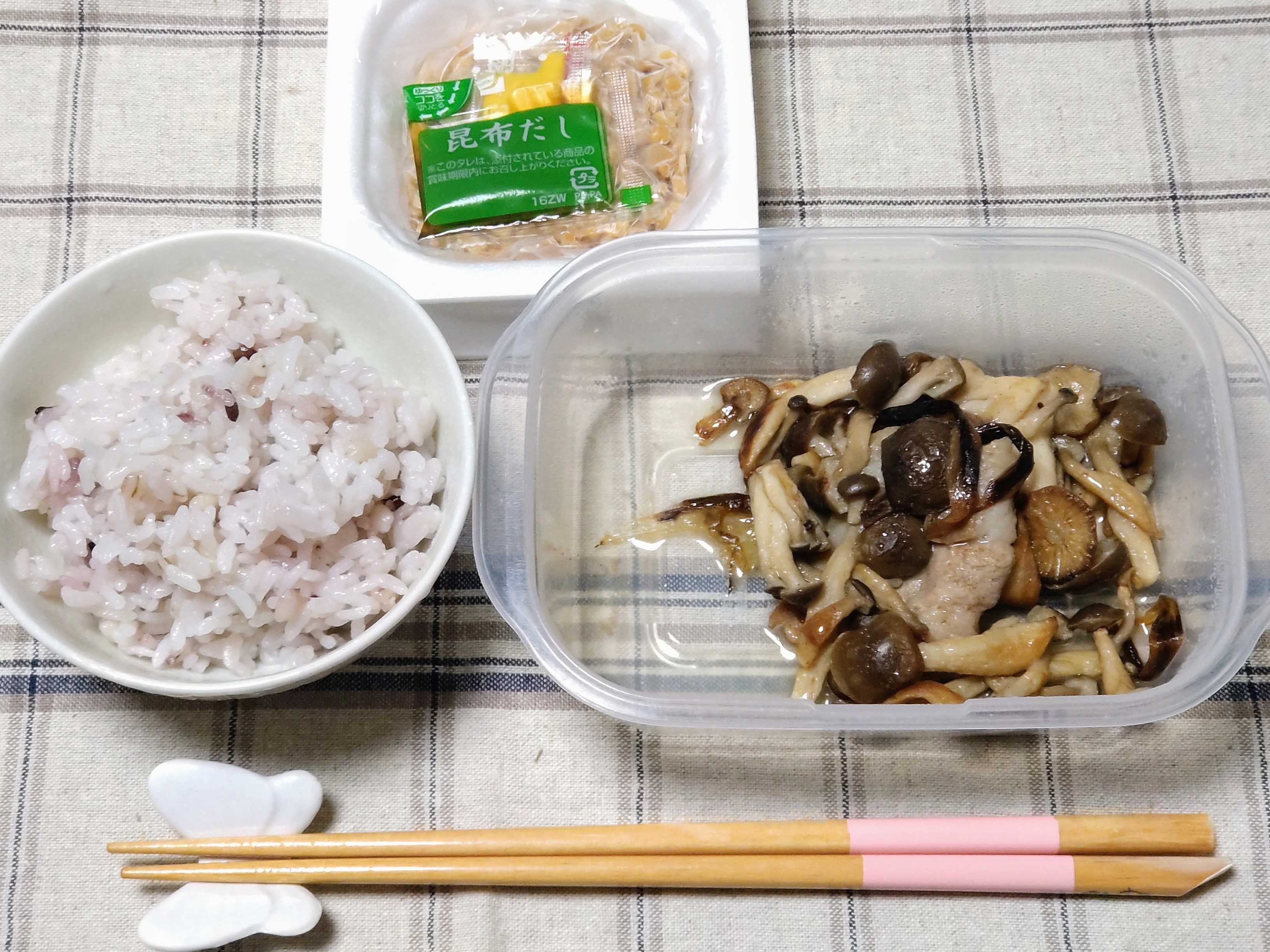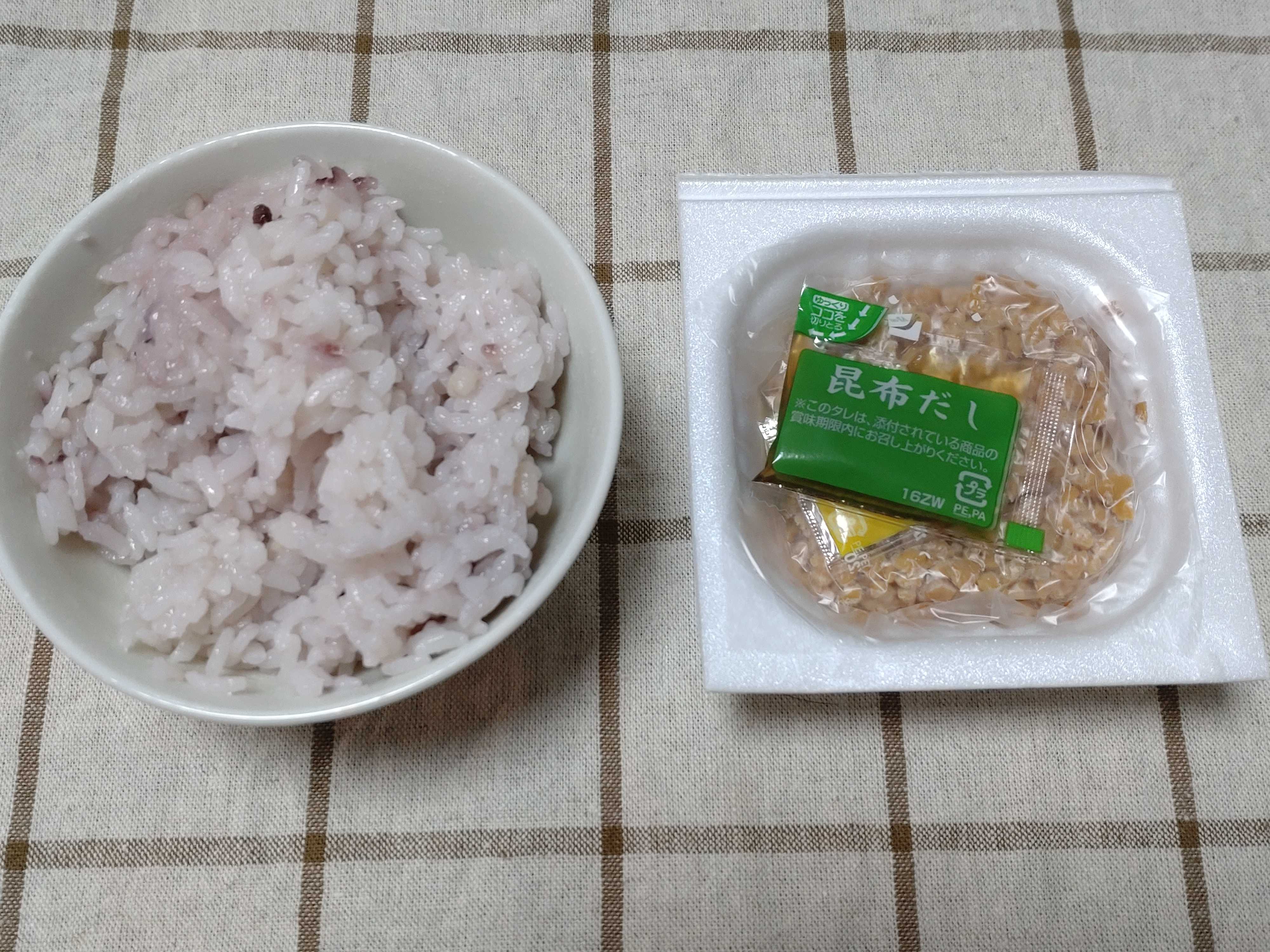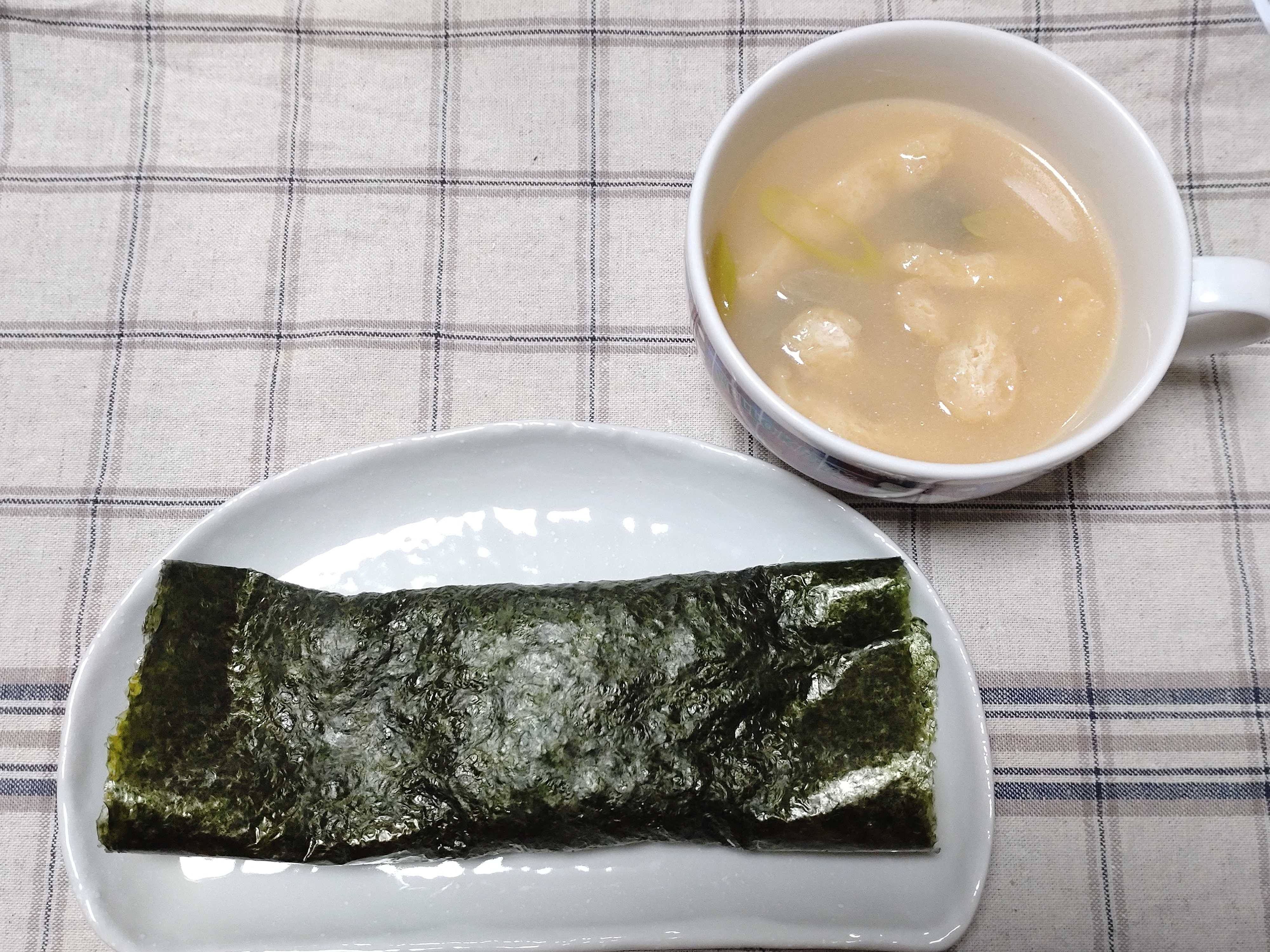 朝食味噌汁海苔巻き昼食電子レンジで作っだインスタントラーメン夕食ごはん水炊き200グラムずつ冷凍してあって使いやすい